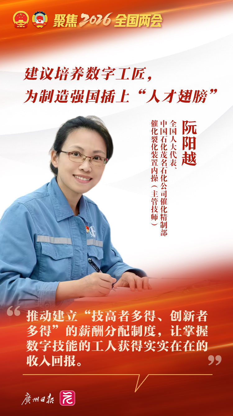 当前,数字技术与实体经济深度融合,智能制造成为产业升级主攻方向,但数字型、创新型、复合型高技能人才稀缺的问题,成为制造业智能化跃升的突出瓶颈。全国人大代表、中国石化茂名石化公司催化精制部催化裂化装置内操(主管技师)阮阳越认为,传统技能人才培养与评价体系已难以适配智能时代需求。“新八级工”制度作为技能人才职业发展的重要制度创新,若未能纳入智能制造等核心能力要求,将与产业数字化转型脱节。