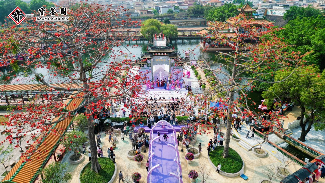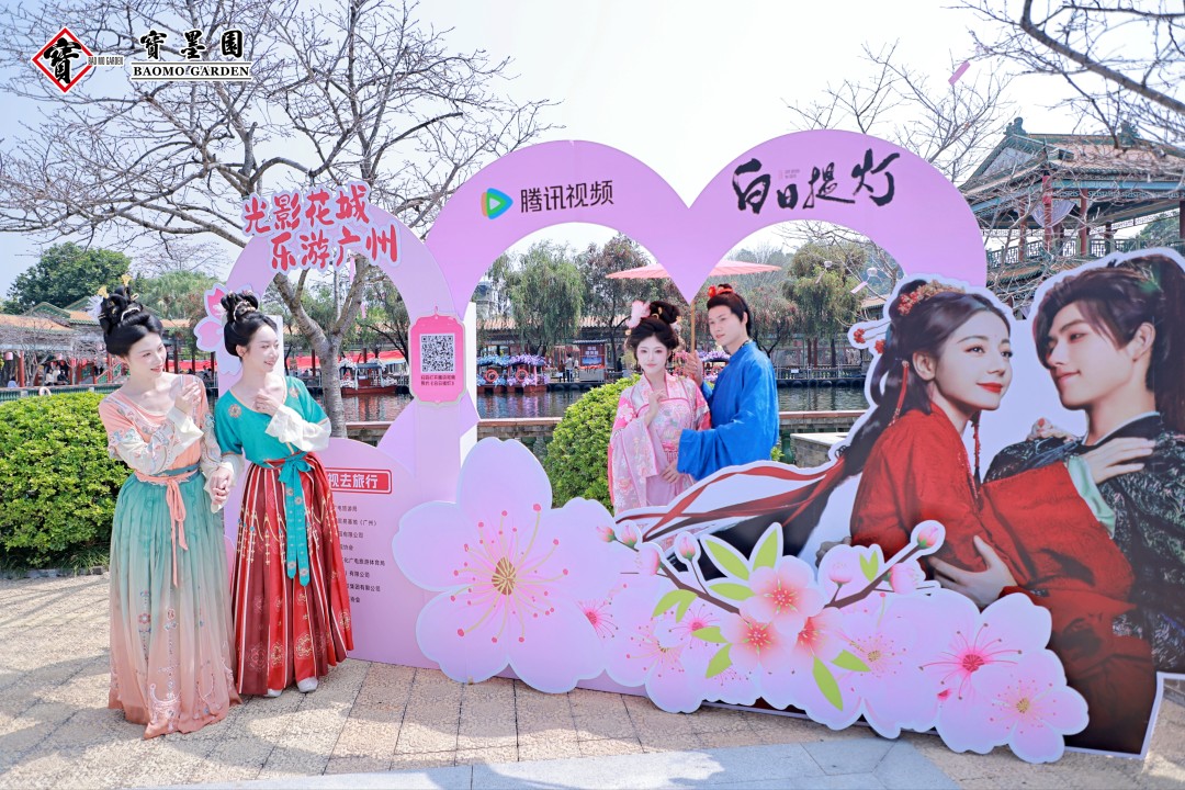 樱花初绽,粉白相映,亭台楼阁间汉风古韵与春日花景交织成景。3月8日上午,由广州市文化广电旅游局指导,国家对外文化贸易基地(广州)与宝墨园主办的“光影花城·乐游广州”跟着影视去旅行系列文旅促消费活动启动仪式暨2026年宝墨园·南粤苑汉风古韵樱花节开幕仪式在宝墨园举办。活动以影视内容为核心引流入口,通过打造城市取景地打卡地标、设计特色影视主题旅游线路、推出系列文旅消费优惠等举措,创新探索“影视+文旅”融合发展模式,为广州文旅消费市场注入全新活力。