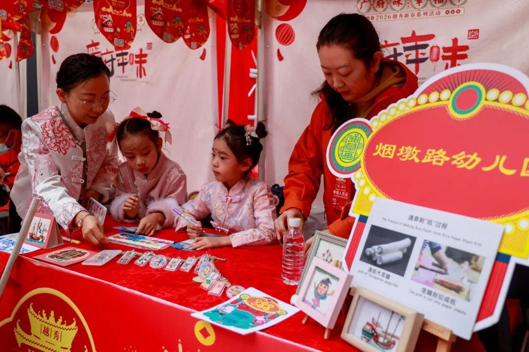 庙会期间正值开学季,越秀区的中小学、幼儿园也参与到活动中来,开展特色校园庙会活动,形成“校校有特色、人人可参与、处处显传承”的生动局面。各校以“古城惟新”为引领,推动广府文化进校园,让学生在触摸历史中坚定文化自信,引导学子在传承中创新成长。