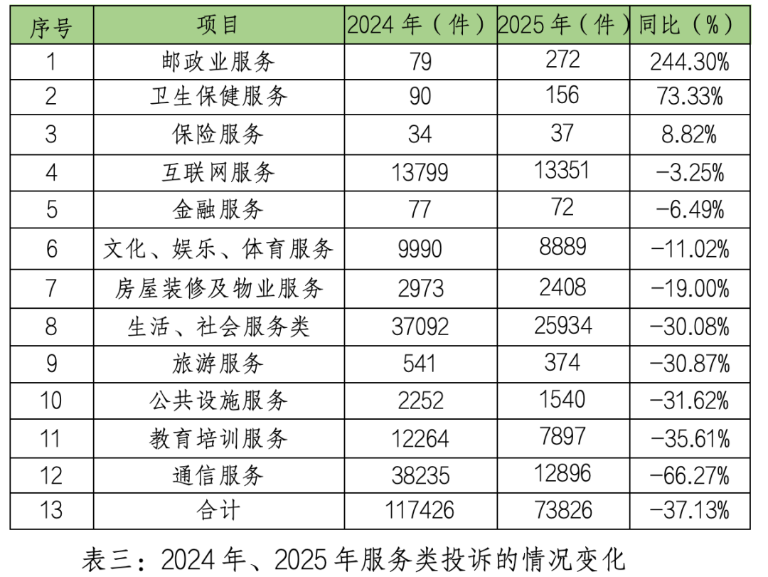 服务类投诉大幅下降,五大领域降幅超三成