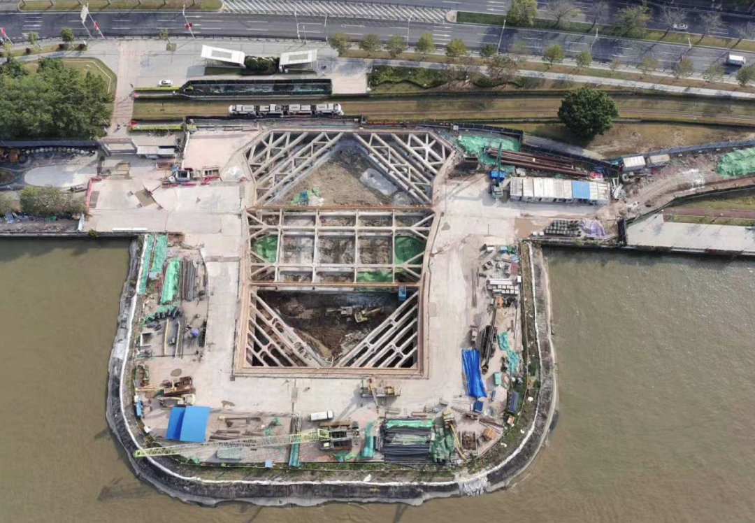 项目沿线设连续下穿珠江及芳村大道南隧道一座、跨工业大道及规划一路路口的双分离立交一处,是集隧道、桥梁、道路于一体的综合性市政工程。目前,项目已完成荔湾对接端隧道主体结构施工,江中段沉管管节完成首次浇筑,正全面开展堤防修复及二次浇筑钢平台搭设工作。2026年,项目着力推进沉管二次浇筑和荔湾端沉管对接安装工作,朝着全线贯通目标不断前进。