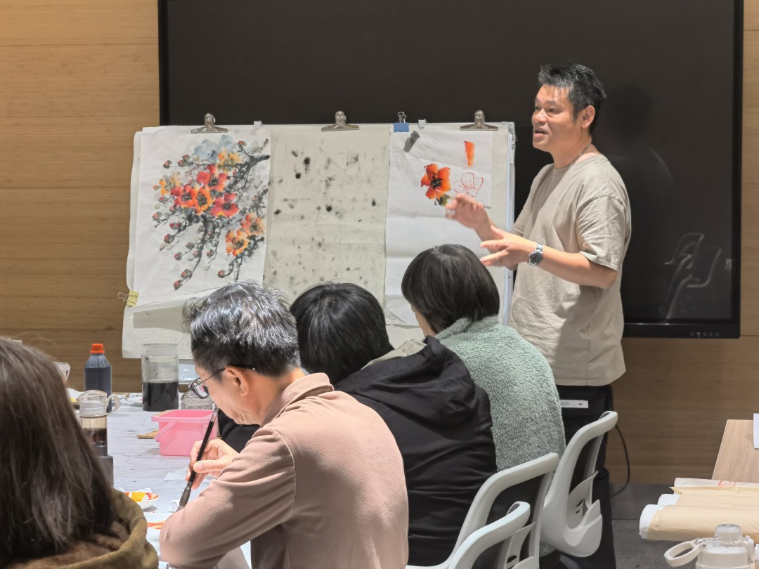 当天,项目首节课程同步开启,学员们在广东楹联学会书画院院长助理兼副秘书长贝刚的指导下,以红棉为笔墨主角,研习国画技法,探寻它傲立南粤的坚韧风骨与深厚人文底蕴。据悉,与广东楹联学会书画院合作打造的中国书画系列课程,将开设专属中国传统书法、绘画、篆刻等系列课程,从零基础循序渐进提升参与者的艺术素养。