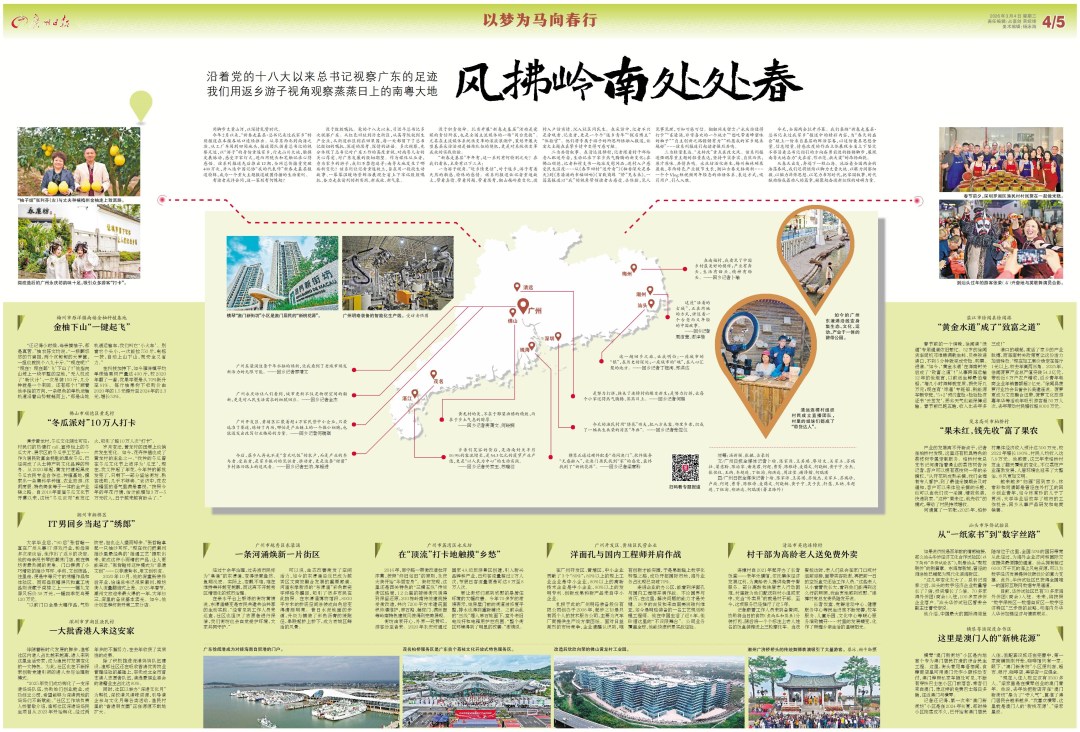 3月3日推出8个大版《广东手信》特别报道和融媒产品,以代表委员携带的梅州金柚子、增城丝苗米、具身智能机器人等“广东手信”为载体,融合创意手绘与AI技术,在“十五五”开局之年向总书记交出南粤奋进路线图;