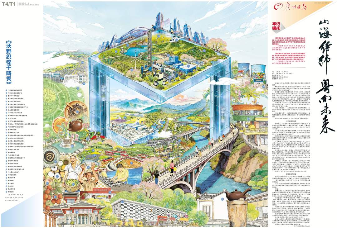 6日推出《山海经纬 粤向未来》双子长卷,化用《山海经》山海意象,卷首《沃野织锦千畴秀》聚焦“百千万工程”三年成效,内页《碧波逐浪向深蓝》展现向海图强实践,生动呈现“县域经济” “海洋经济” 双轮驱动推进高质量发展的时代图景。