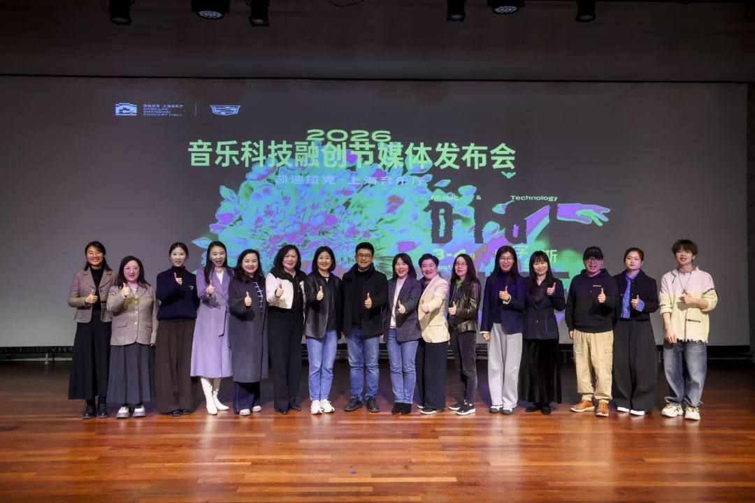 发布会现场宣布,“数字缪斯——2026音乐科技融创节”将于2026年3月至4月在凯迪拉克·上海音乐厅举行。本届融创节在延续往届“特别呈现”“作品展演”“展览”“工作坊”“研讨会”等板块的基础上,将增设“新品发布”板块。届时,将有六部全球首演作品、一个“数字影像与声音装置展”、四场工作坊、一场研讨会亮相融创节,多款前沿音乐科技产品也将在本届融创节上首发。