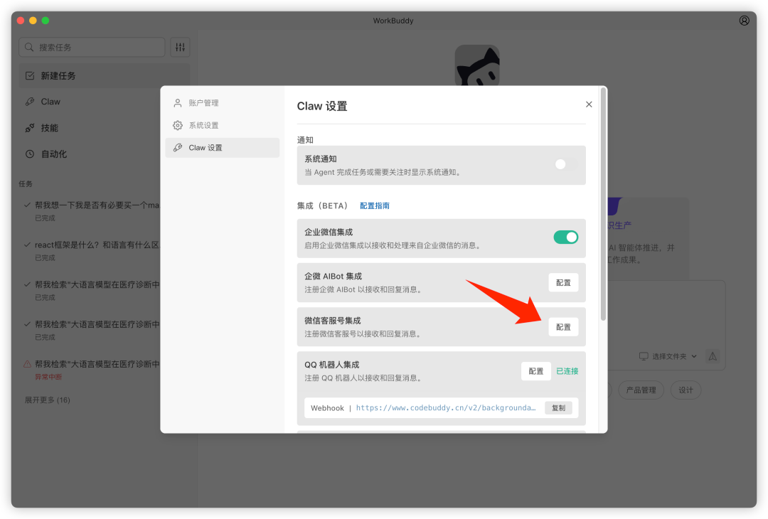 据介绍,以前“养虾”,用户得坐在电脑前,看着它“长大”(打工),在新版本中,只需在设置里简单配置微信客服号,就能实现微信一键直连。不管用户在逛商场还是在外见客户,只要在微信里发一句语音或文字,办公电脑上的WorkBuddy就会立刻开工,查资料、写文案、处理报表……全程在本地运行。