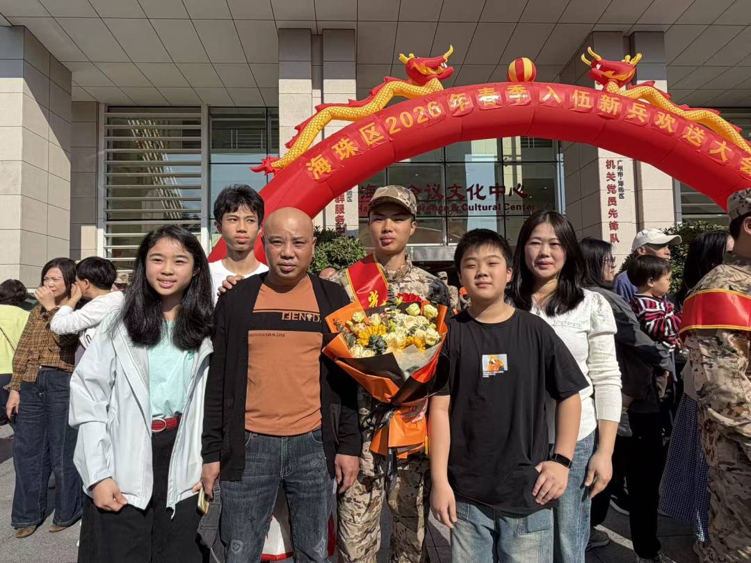 “即将踏上征程的新兵同志们,经过严格的体格检查、政治考核和层层筛选,成为人民解放军的一员,这不仅是你们个人和家庭的光荣,更是海珠区的骄傲。”海珠区有关负责人说,海珠将始终带着责任、带着感情,全面落实军人军属优抚安置政策,用心用情用力解决好家属就业、子女入学、家庭困难等实际问题,全力做新兵的坚强后盾,让部队安心、让军人放心、让家属暖心。
