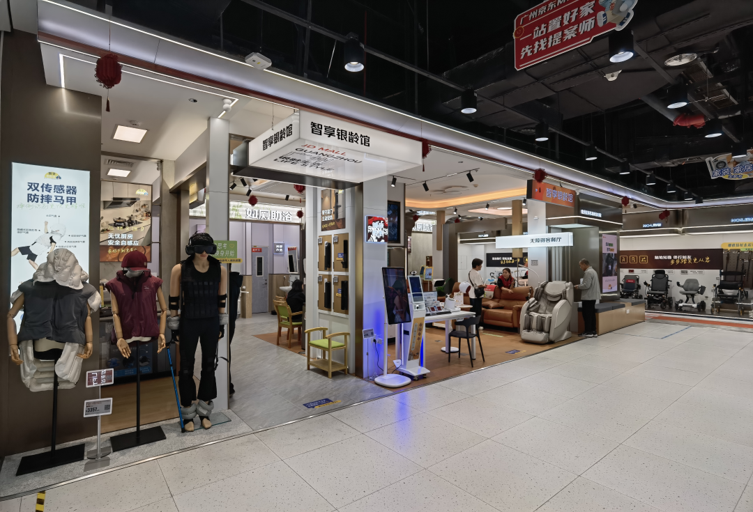 该馆位于京东MALL广州海珠店,以 “科技适老” 为核心理念,提供从安全防护到健康干预的适老化解决方案,覆盖适老化家电、家居及医疗器械的场景化体验与一站式选购,并可实现最快72小时的适老改造服务。