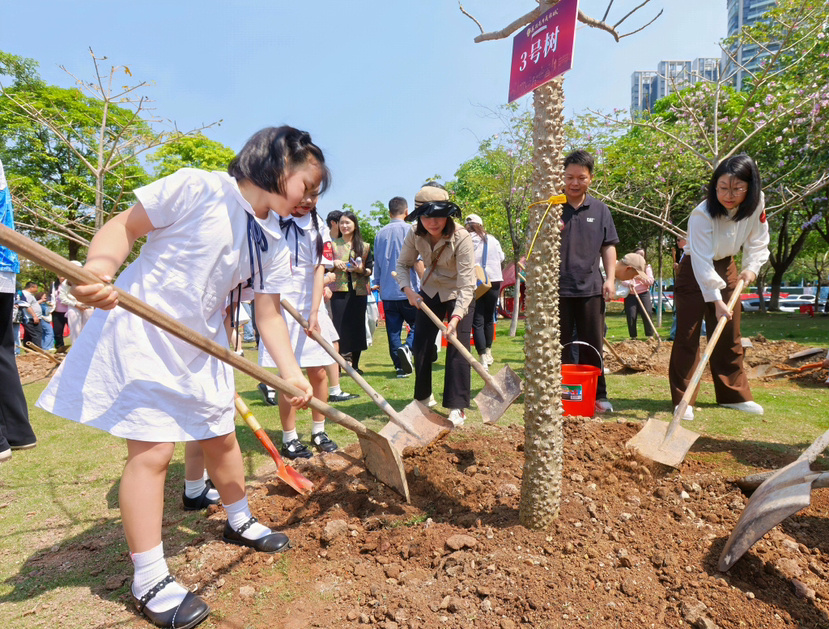 植树现场还同步举办了以红棉文化为主题的趣味游园活动。“木棉科普讲堂”讲述英雄树的物候奥秘,“木棉艺术共创坊”让孩子们挥洒创意,“地球呼吸树艺术展”则以童趣视角传递绿色环保理念。