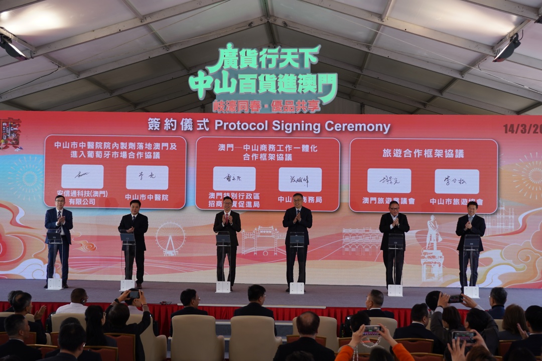 签约仪式在“广货行天下·中山百货进澳门—岐濠同春·优品共享”开幕会上举行,中山市商务局局长张峻峰、澳门特区招商投资促进局(以下简称“澳门招商局”)主席谢永强代表双方签约。此次合作旨在充分发挥两地优势,释放中山制造业与商贸服务业潜力,提升两地商务工作一体化水平,实现资源互补、产业联动、市场共融。