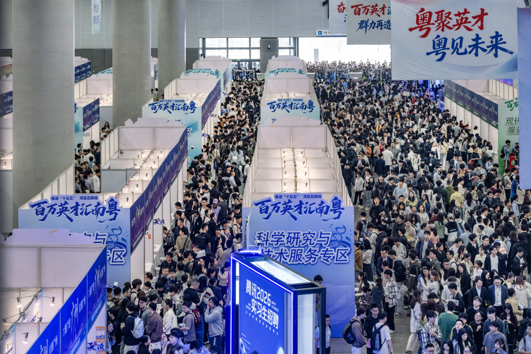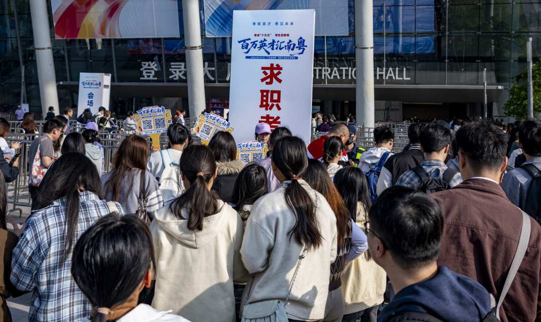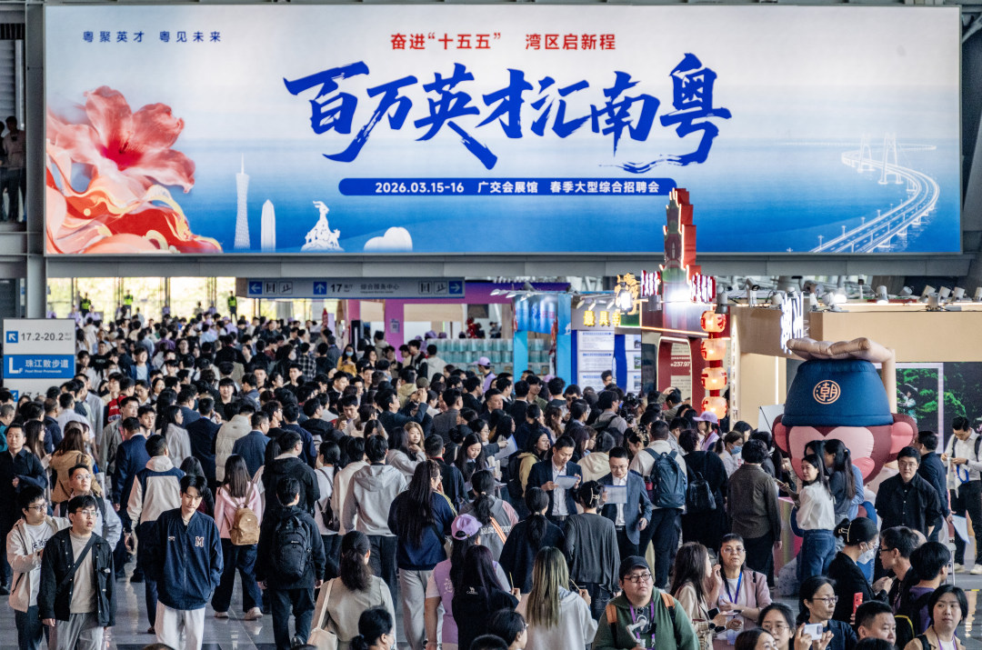 3月15日上午,“百万英才汇南粤”2026年春季大型综合招聘会在广州广交会展馆D区启幕。本次活动以“粤聚英才 粤见未来”为主题,活动现场有近2000家头部单位,提供超8.5万个优质岗位,规模与质量均创历史新高。当天有近12万名求职者入场应聘。