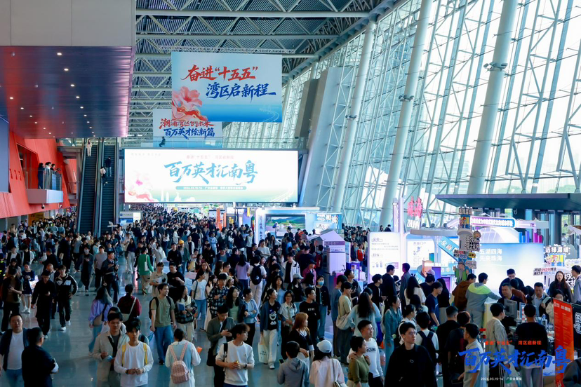 “百万英才汇南粤”2026年春季大型综合招聘会盛大开幕,现场人潮涌动、青春飞扬。活动首日就有近12万名求职者入场。