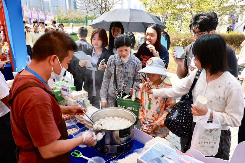 美食区人气火爆。中山石岐乳鸽、东莞厚街烧鹅、顺德双皮奶、广州增城爆汁鱼丸、姜葱白切鸡味牛奶等传统风味与网红美食交相辉映,用味道向每一位求职者发出岭南的热情问候。