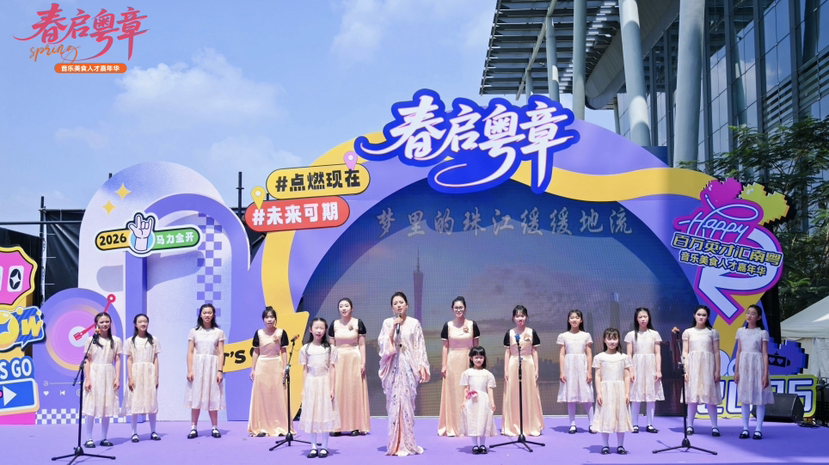 记者在现场看到,在“春启粤章”音乐美食人才嘉年华的舞台上,中山大学、华南师范大学、华南农业大学、广州大学等高校的网红乐队联袂登场、同台竞技,用激情碰撞的火花点燃现场氛围,跃动的音符串联起一段从菁菁校园到活力广州的青春音乐旅程。
