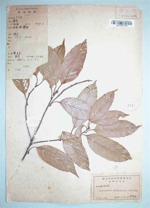 1938年蒋英在乐昌采集的苦槠标本。(吴永彬供图)