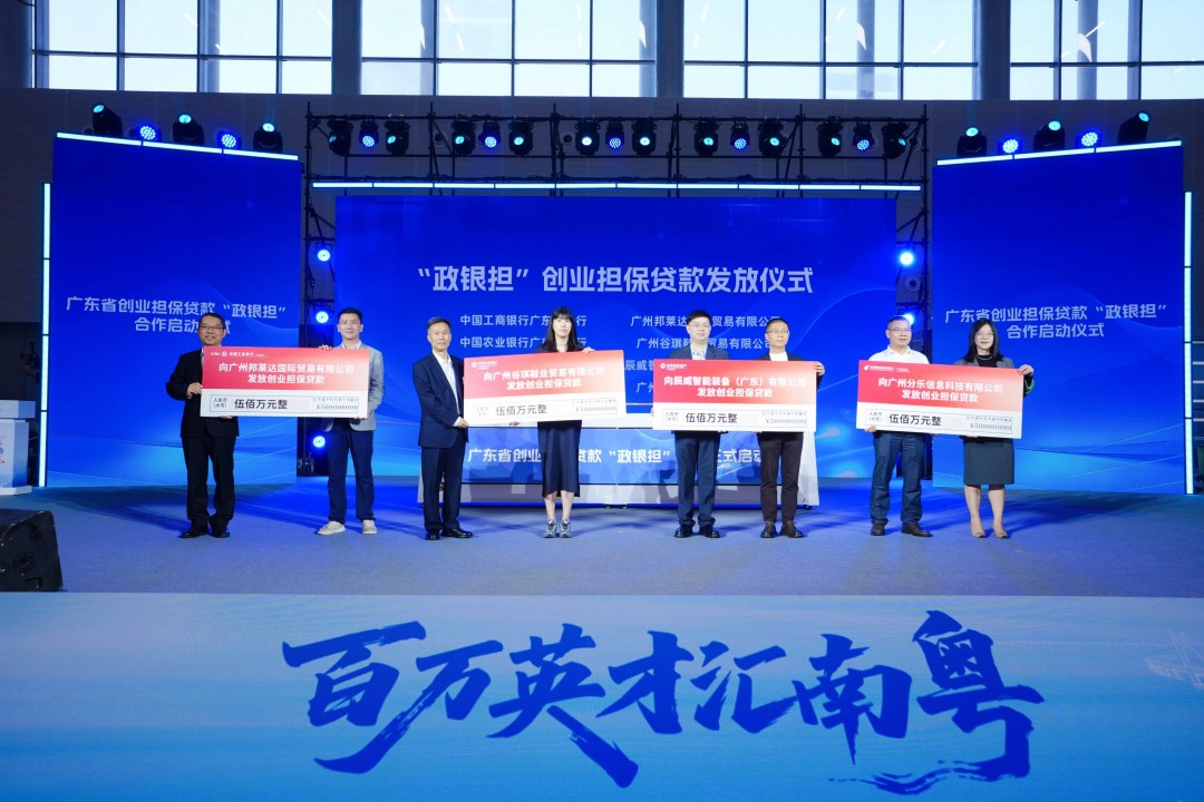 3月15日,广东省创业担保贷款“政银担”合作启动仪式在“百万英才汇南粤”春季大型综合招聘会现场举行。广东省人力资源和社会保障厅、广东粤财投资控股有限公司、中国工商银行广东省分行、中国农业银行广东省分行、中国建设银行广东省分行、中国邮储银行广东省分行共同启动,标志着“政府、银行、担保机构”三方联动支持创业融资的服务模式正式启航,为在粤创业者注入强劲金融动能。
