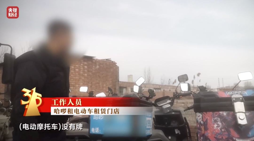 哈啰租电动车租赁门店 工作人员:电动摩托车没有牌。