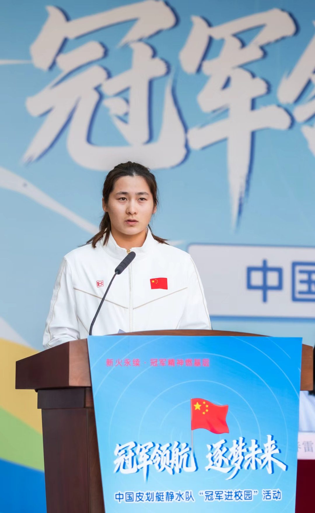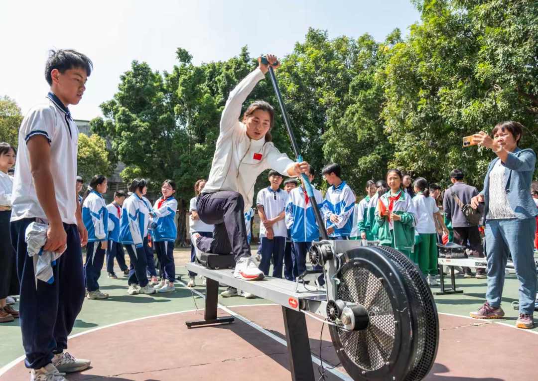3月16日,“冠军领航·逐梦未来”中国皮划艇静水队“冠军进校园”活动在广州市白云区钟落潭镇举行。中国皮划艇协会副主席、国家皮划艇队领队李欣,副领队胡海承,带领奥运冠军教练雷文斌、王博,奥运冠军孙梦雅、季博文,世锦赛冠军王楠,世界杯冠军于岳斌、殷梦蝶,亚运会冠军马亚男等一众顶尖选手走进竹料第三中学,与多所学校的师生们面对面交流,分享拼搏故事。冠军们还化身“体育老师”,手把手指导同学们的皮划艇技巧,点燃青少年的逐梦激情。