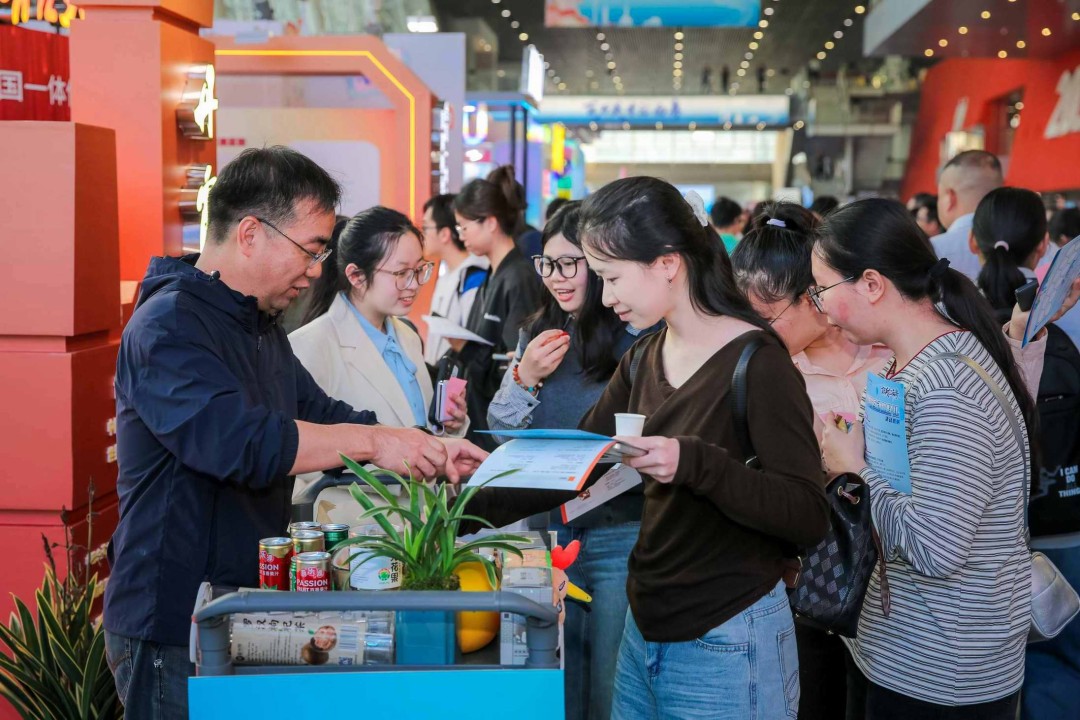 不同于传统招聘会的严肃氛围,韶关展区将好吃、好玩、好用的元素尽数融合,成为“奋进之路”主题展区中的人气打卡地,让英才们在轻松愉悦的氛围中感受韶关的烟火气与吸引力。