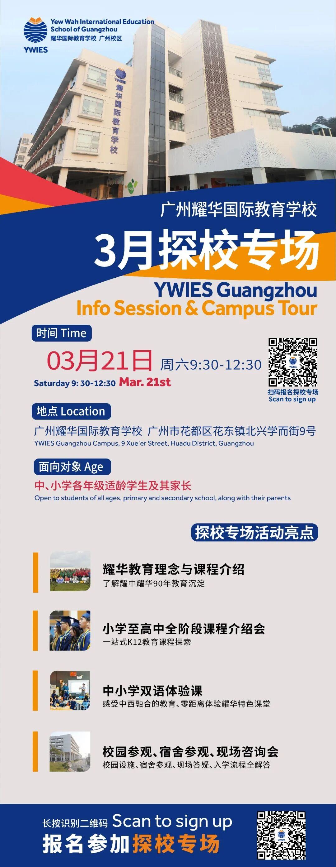 3月21日,诚邀各位家长亲临现场,我们将为您解读耀华的教育理念与实践,展现耀华的多元文化以及完善的课程体系。