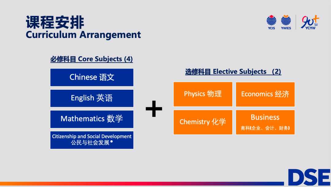 香港中学文凭考试(文凭试)HKDSE课程为三年制课程,学生要修读中国语文、英国语文、数学、公民与社会发展4门必修核心科目,以及2-3门选修科目。课程设计覆盖了学术、实用、职业及综合取向的科目,满足个人发展、职业规划、社会需求以及经济和科技进步等多方面的需求。其中数理科目(如数学、物理、化学、生物)与IGCSE、A-Level、AP等国际课程和国内课程的知识点存在大量重合,这一特点使得来自不同课程学习背景的学生在转衔至HKDSE课程时,能够相对顺利地适应并跟上学习进度。