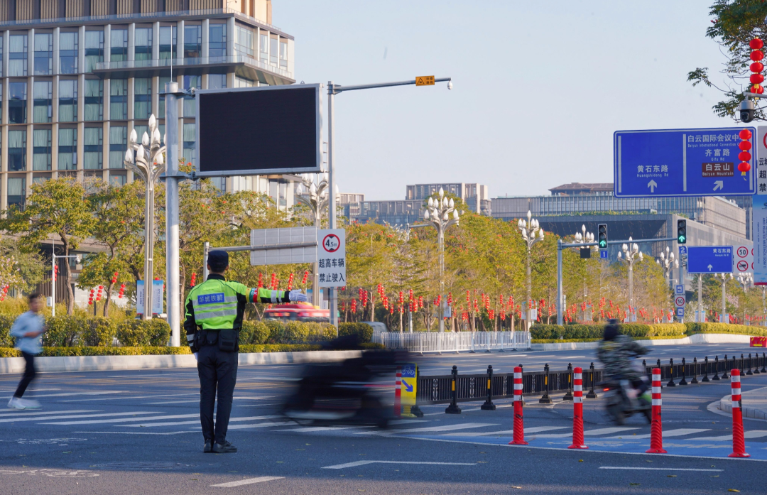 其中,交管部门强化路面全时段、全区域管控,严查各类交通违法行为:前置163个拖车备勤点,在广州南站等21个枢纽站场周边设置疏导岗,引导车辆即停即走;前置“羊城铁骑”力量,加强主干道及高速巡逻,重点巡查桥梁、隧道、互通立交等关键节点,严防交通拥堵;实行“高峰勤务”,在易堵路段增派警力,采取远端提示、近端疏导等措施,缓解通行压力;创新运用“警车巡+视频巡+无人机巡”立体模式,严查占用应急车道、分心驾驶等违法行为。