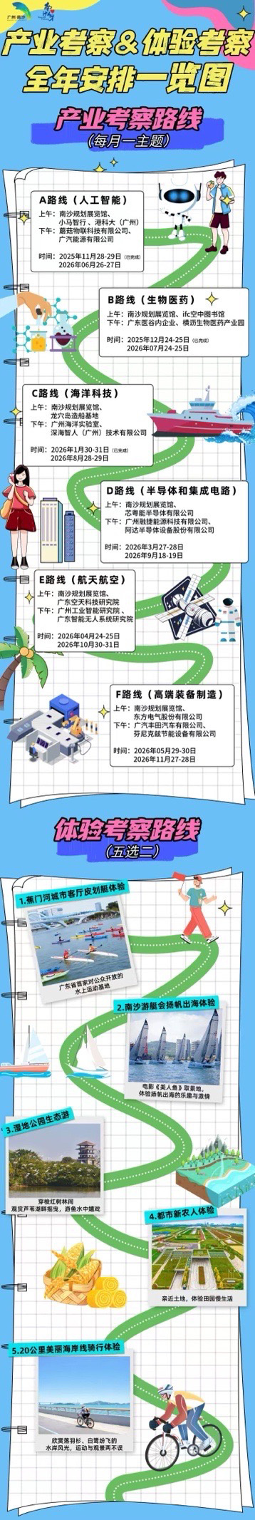 南沙开发区人才发展局相关负责人介绍,“博创未来”全年规划6条特色产业研学路线。其中,3月底半导体和集成电路专场将于3月27日至28日举行,包括实地探访芯粤能、融捷能源、阿达半导体等相关领域的名企。后期还会推出航天航空、高端装备制造两条路线,航天航空路线涵盖广东空天科技研究院、广州工业智能研究院和广东智能无人系统研究院,高端装备制造路线则聚焦东方电气、广汽丰田、芬尼克兹等企业,期待有更多博士加入其中。