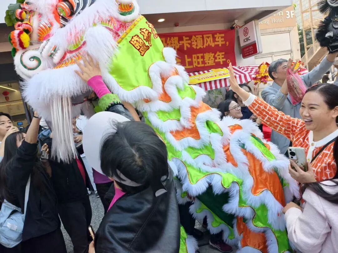 八狮巡游将现场气氛推向顶点。来自坑口、泮塘、盐步等地的醒狮队齐聚,瑞狮腾跃、采青献瑞,锣鼓声、喝彩声此起彼伏。醒狮沿路线巡游,穿梭于街巷,所到之处,市民游客争相触摸狮头、沾喜纳福,彩色狮子与沿街彩旗相映成趣,尽显广府醒狮的刚劲与喜庆。巡游队伍与沿街市集、市民互动频繁,传统民俗的活力在街巷间充分绽放。