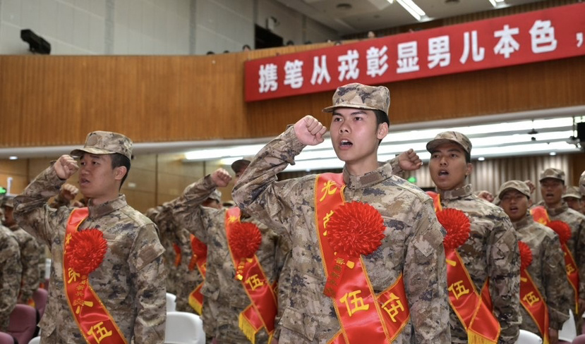 新兵家长代表曹海是一位扎根广州中小学教育一线20多年的教育工作者,他深知“成长靠磨砺”,对于新兵们能够响应国家号召、投身国防事业感到骄傲与自豪,“你们穿上军装,就要把‘保家卫国’刻在心里,再苦再累,也别退缩,我们永远是你们的后盾。”