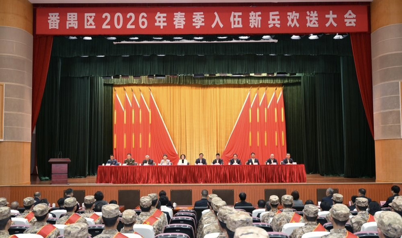 大会在庄严的国歌声中拉开帷幕。黄彪在讲话中指出,2026年是“十五五”规划开局之年,全区上下正锚定建设先进制造业强区、宜业宜居宜游优质生活圈,提档升级推进第二个“万亩千亿”产业攻城拔寨行动,跑出加速度、干出新业绩。番禺是一片红色热土,历来有拥军优属、拥政爱民的光荣传统,希望全体新兵听党指挥、坚定信念、刻苦训练,尽快完成角色转变,在军队这个大熔炉里淬炼成钢、建功立业,努力把自己锻造成无愧于时代与人民的优秀革命军人,在强军兴军的伟大征程中书写青春华章。