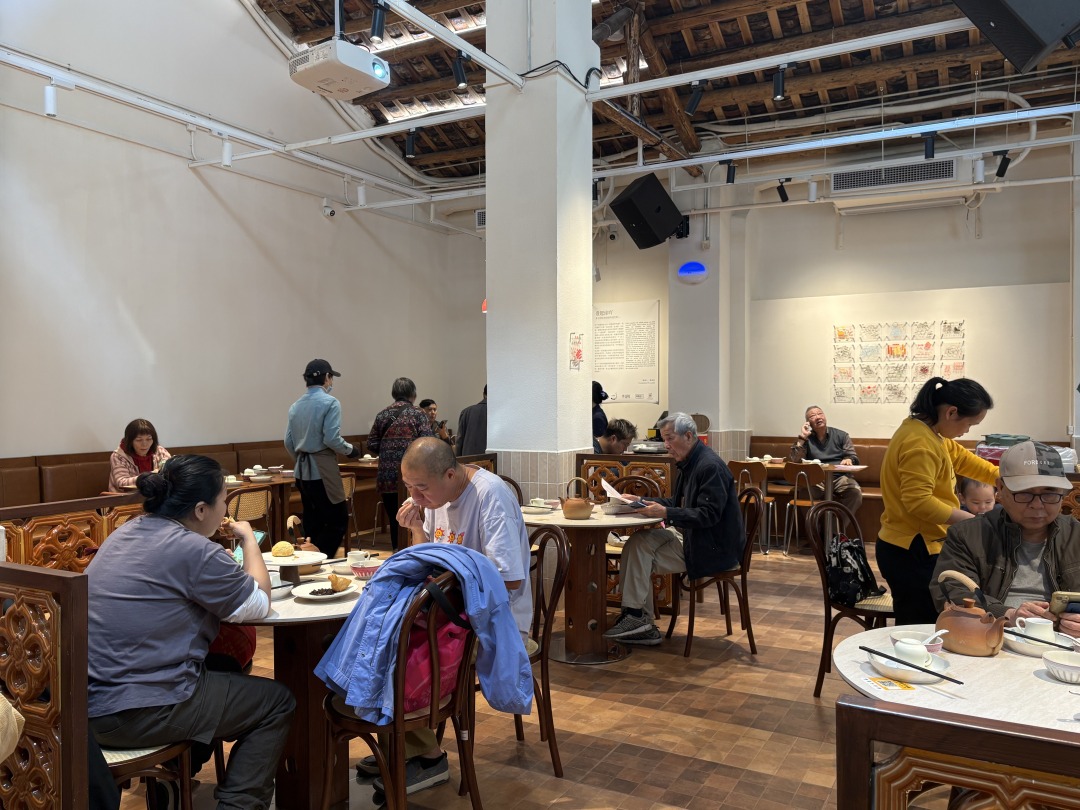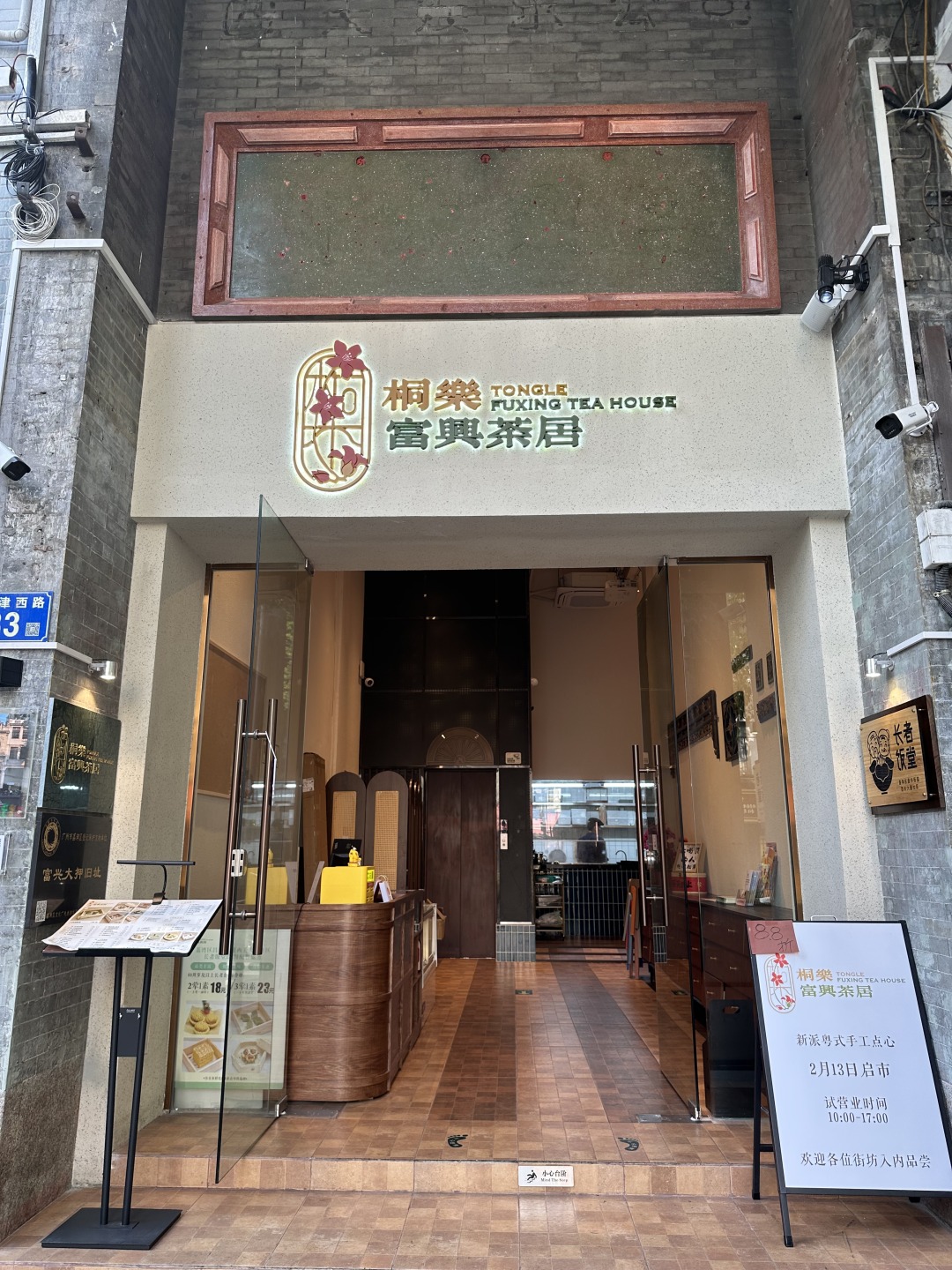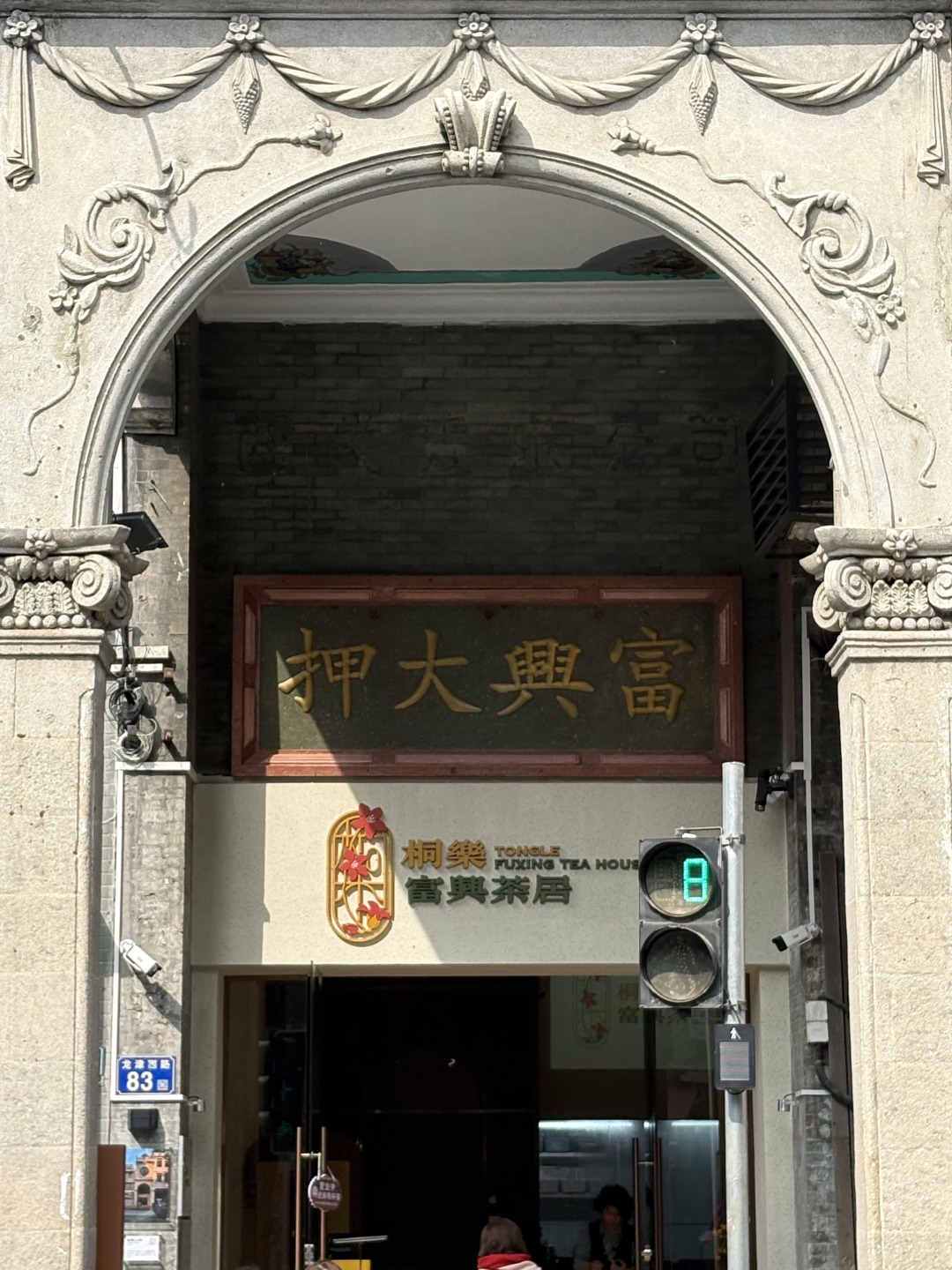 近日,记者来到富兴大押旧址,门口挂着长者饭堂和桐乐富兴茶居的招牌,告示写着“2月13日启市”。径直走入里面再右拐,穿过一道拱门,便来到了一楼营业空间,来饮早茶的街坊已坐得七七八八。69岁街坊梁叔住在附近5分钟路程的多宝大新街,他告诉记者,自2月13日启市,他已是第四次光顾,“在附近住了将近60年,以前这里是一间粤菜饭店,二楼不对外开放,后来饭店倒闭,就再也没来过。”梁叔说,此次装修后,环境更明亮,但内部结构都没有大的变化。“装修风格虽然比较简约,胜在很多点心是手工制作、新鲜出炉的,品质属中等偏上,价格也不算贵,性价比可以。”梁叔认为,这里与其一直关着,不如开放,多一个就近饮茶的地方。“这是我们第一次来。”街坊陈伯、周姨夫妇前阵子路过富兴大押旧址时发现它开放后前来打卡。“以前,这里是满园春粤菜餐厅,2020年左右关店了。”周姨说,那时饭店主打八宝鸭、冬瓜盅、花雕鸡等老式粤菜,他们时不时会来吃饭。