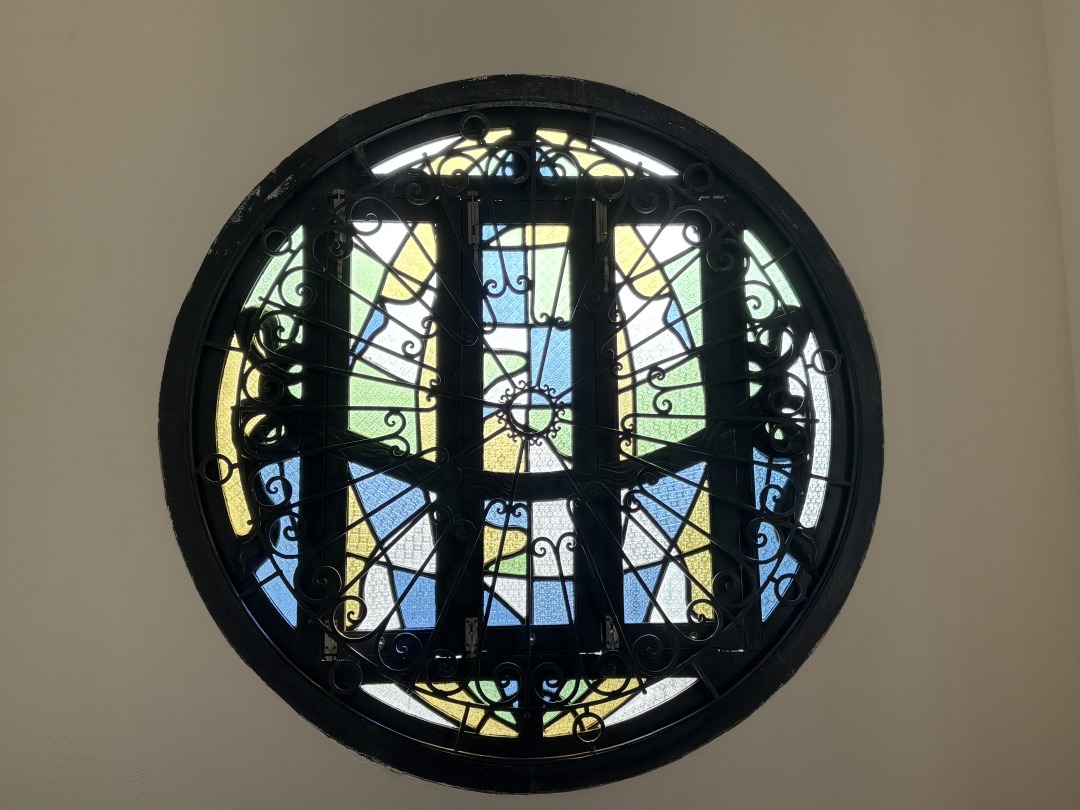 随后记者来到二楼,这里尚未完成布置,仅供参观。墙上一张相片记录着二楼曾经作为厨房的模样,改造后,整个空间窗明几净,原先的青砖墙被特意裸露出来,让人们看到其作为文保建筑的特色。最引人注目的巨型圆形木窗下,则设置了就餐雅座。