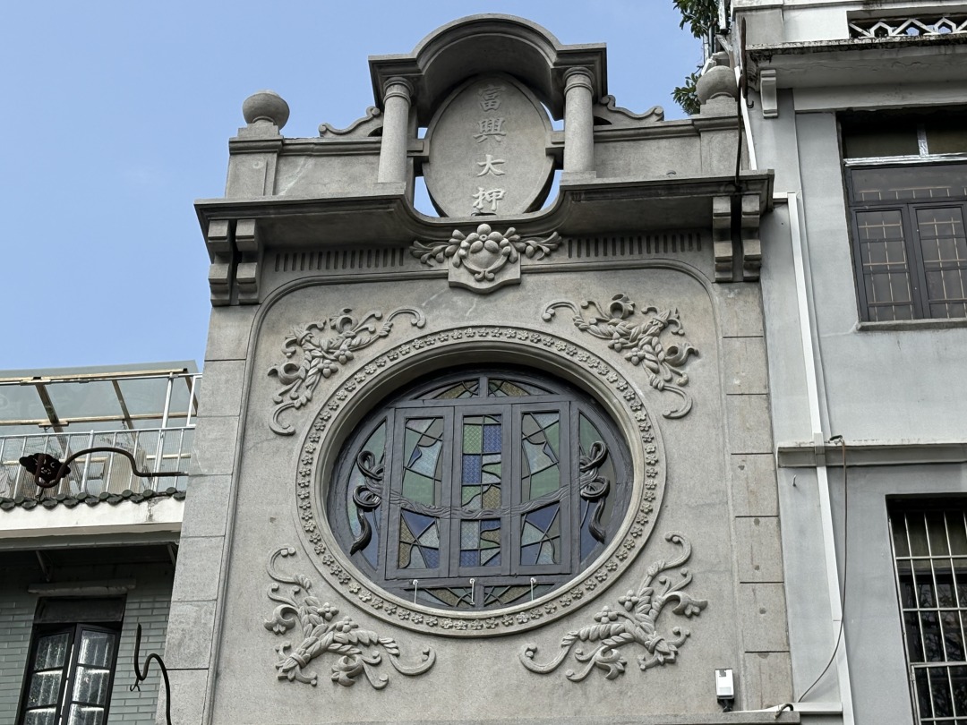 据了解,富兴大押旧址始建于20世纪20年代,是广州典当行业的代表性建筑。20世纪初期,广州城区典当行数量居全国之首,“当铺多过米铺”这句俗话生动反映了当时的行业盛况。富兴大押旧址高三层,采用骑楼形制并融合中西风格,外墙石米批荡搭配半圆拱门,拱门浮雕线条清晰;二楼居中为雕花木窗,浮雕花卉图案环绕,三楼女儿墙以塔司干柱式承托拱券,中央椭圆额匾刻“富兴大押”字样。1949年,富兴大押旧址由荔湾区房管站接管,1958年改为民办工厂,2011年12月,被公布为广州市荔湾区登记保护文物单位。最后一任使用者为满园春饭店。