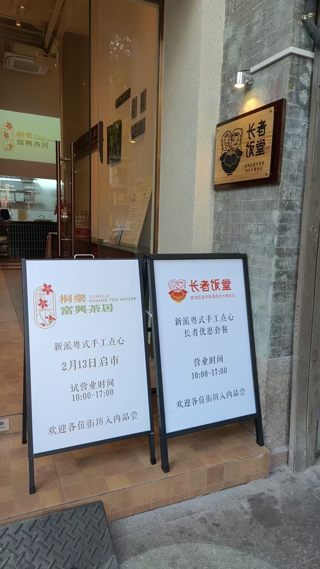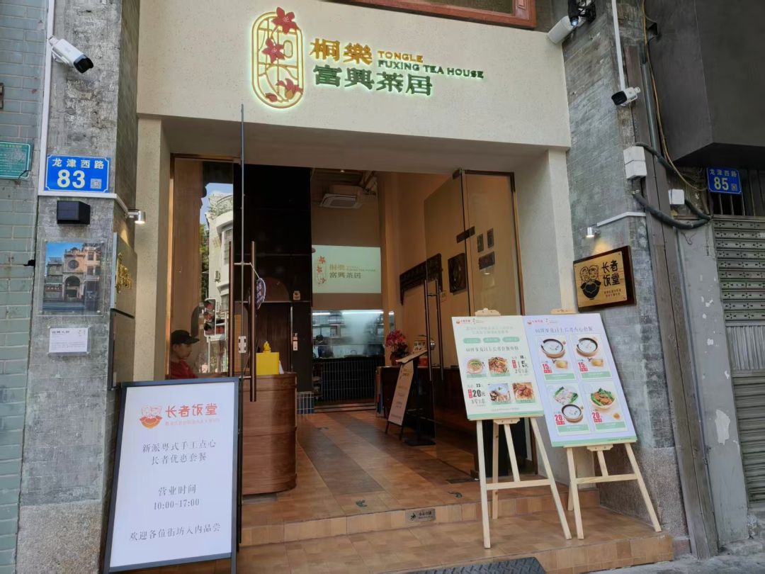 活化运营方、桐乐富兴茶居负责人郑舒恩介绍,这里并非一间普通的茶居,而是荔湾昌华街道长者饭堂所在。据了解,富兴大押旧址为政府公房物业,2020年左右原来的饭店闭店后闲置了几年,2025年,昌华街道引入桐乐集团对该址进行活化并进行街道长者饭堂的运营。对此,昌华街道有关部门相关负责人表示:“一直以来,因场地难寻,昌华街道没有长者饭堂,根据辖区实际情况,去年我们决定以政企合作共建的形式,将闲置的富兴大押作为长者饭堂活化,面向全市开放,重点服务街道辖区长者。”