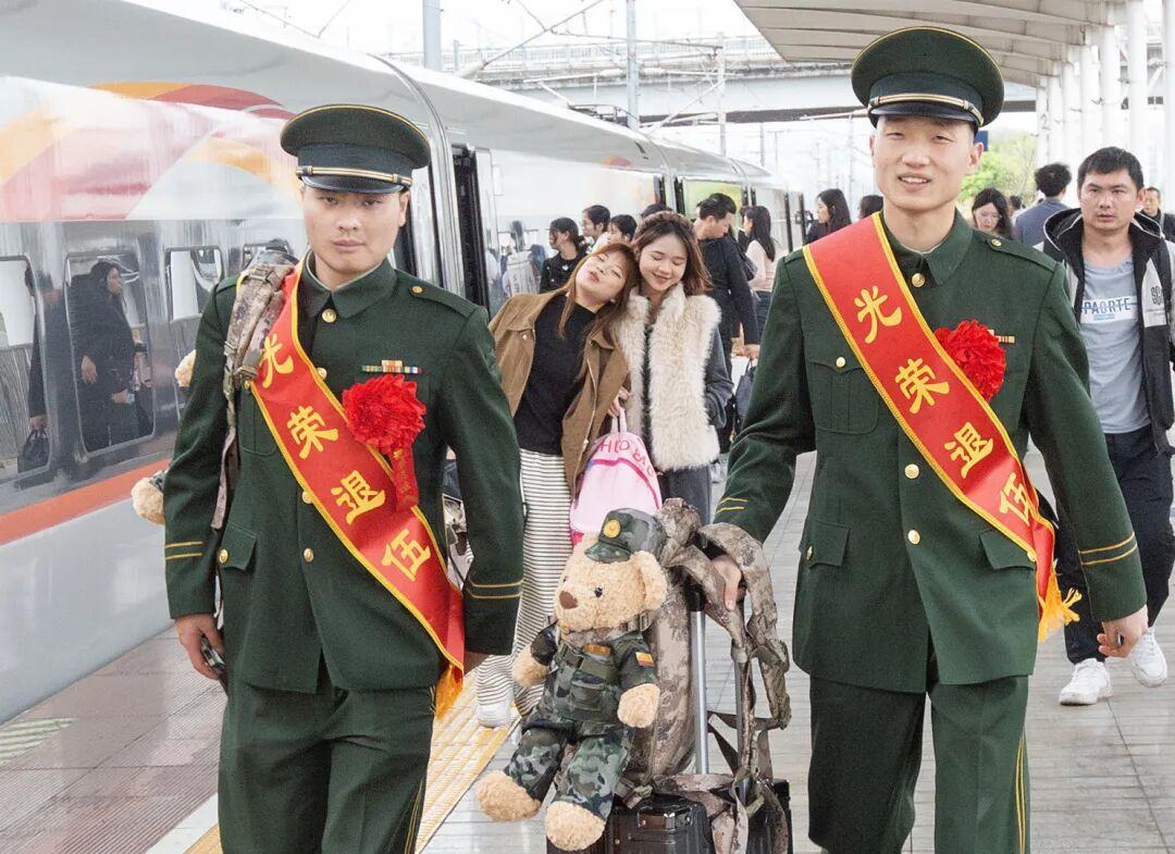 “好帅啊”,春运期间正赶上有部队退伍军人。-和匀生摄