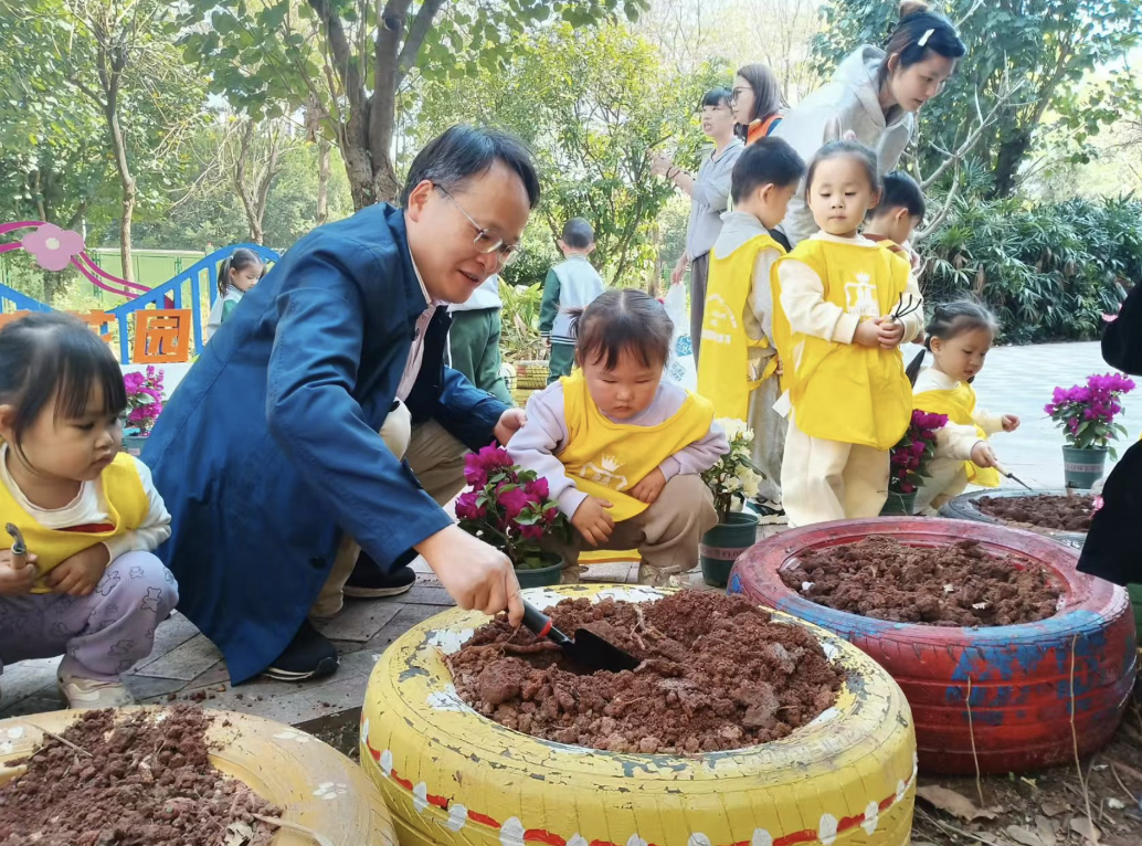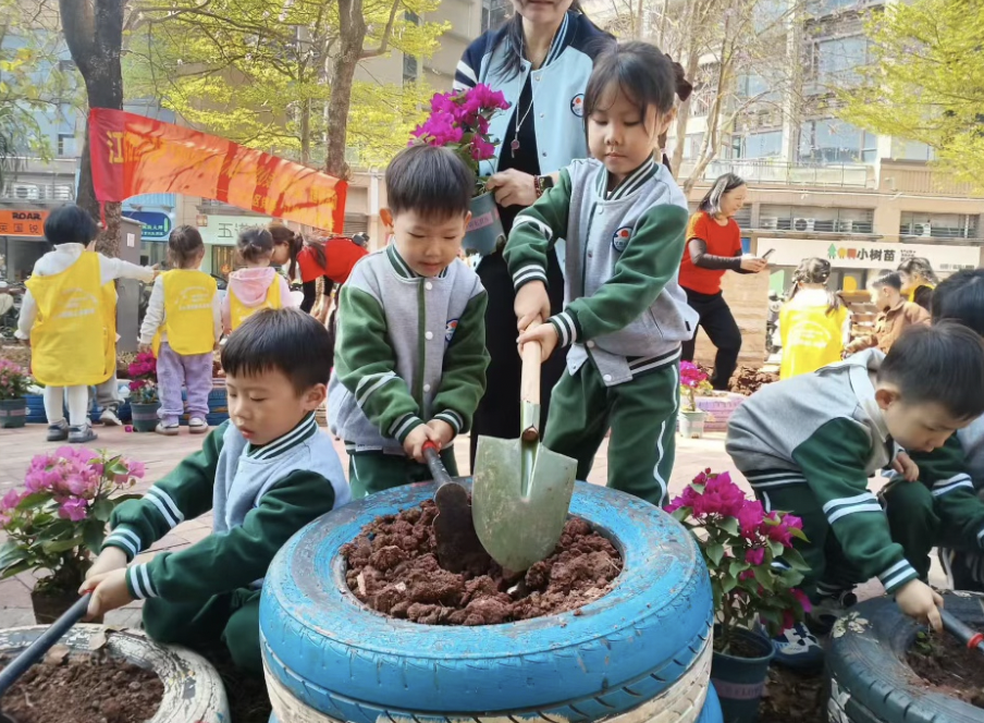 活动现场,党员干部、志愿者与师生代表分工协作、默契配合。志愿者现场指导,带领小朋友们从树苗挑选、挖坑间距到扶苗培土、浇水定根,每一道工序都细致讲解、严格把关。大家挥锹铲土、扶树正苗、踩实土壤、提水浇灌等,每一个环节都一丝不苟、有条不紊。