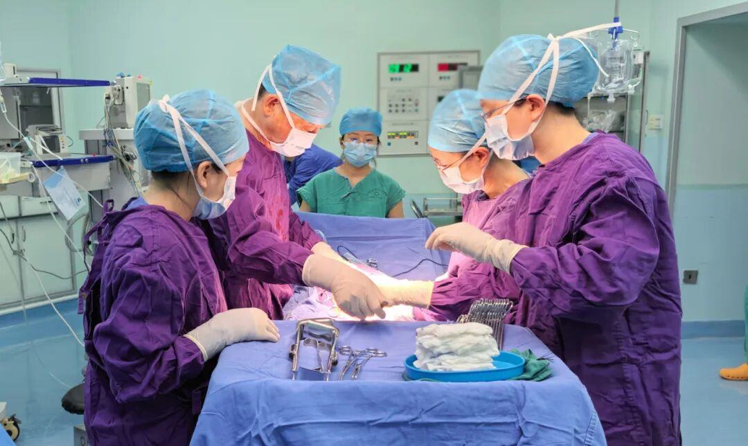 入院后,产科团队持续监测胎心、胎动,及时发现胎儿窘迫征象,须尽快终止妊娠。产科立即组织多学科综合评估,结合患者病史、MR检查结果及身体状况慎重讨论,一致认为继续顺产风险较高,最终确定剖宫产为最安全的分娩方案。