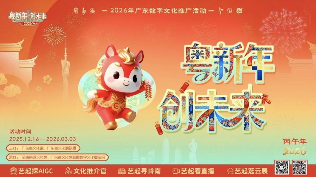 由广东省文化馆、广东省文化馆联盟主办,全省各级文化馆共同承办的“粤新年·创未来”2026年广东数字文化推广活动于近日圆满收官。