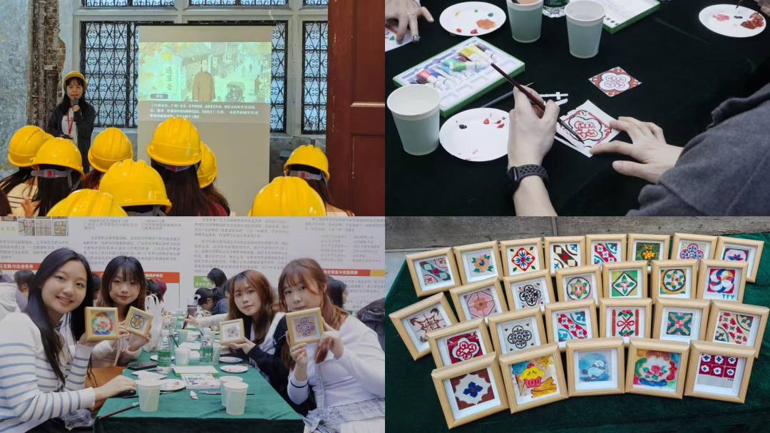 港教大师生还体验了“步移花阶,纸上通草”非遗传承课。课程由“摩登岭南”青年创客团队研发和讲授,该团队以仓边路56号古建筑中的花阶砖为创作模板,以“趣味闯关”为主线,将百年通草历史融入现场情景,在院落里带领师生们描绘花阶砖,共同勾勒出百年前被誉为“东方明信片”的广府通草画。一位港教大学生说:“我第一次接触通草纸,也喜欢古建筑,在这里既能了解岭南历史,又能体验非遗,太有意思了”。