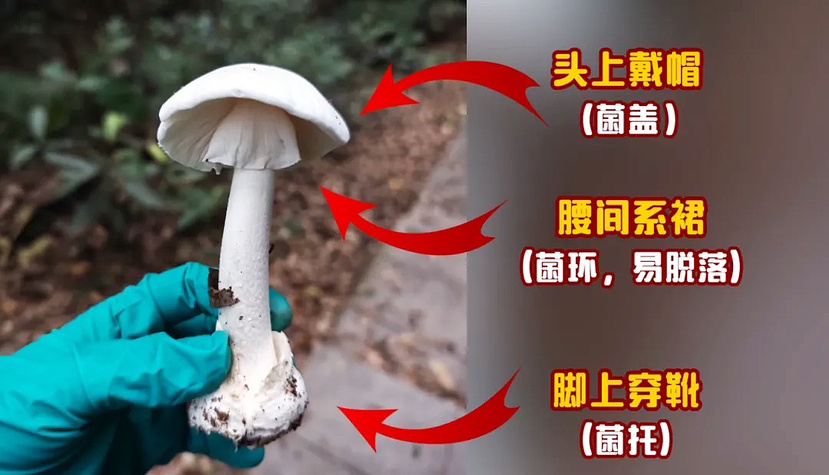 致命鹅膏,俗称白毒伞,每年2月至5月是它的生长旺季,与山毛榉科的黧蒴栲有共生关系。白毒伞毒性极强,误食会造成严重的急性肝损害,误食死亡率高达75%,仅需食用约50克(一朵中等大小白毒伞)就足以致命。