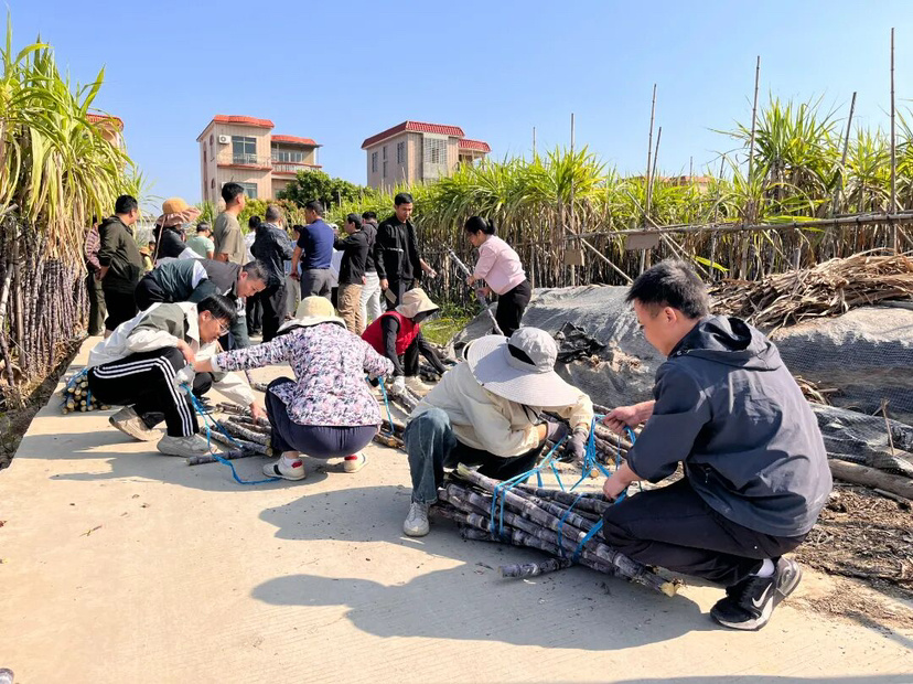 镇党委组织党员干部成立“助农小分队”,利用周末时间全员下沉蔗田,帮农户砍蔗、分拣、装车,协调运输车辆。村“两委”干部带头认购,党员志愿者主动对接企业需求,用行动解农户燃眉之急。