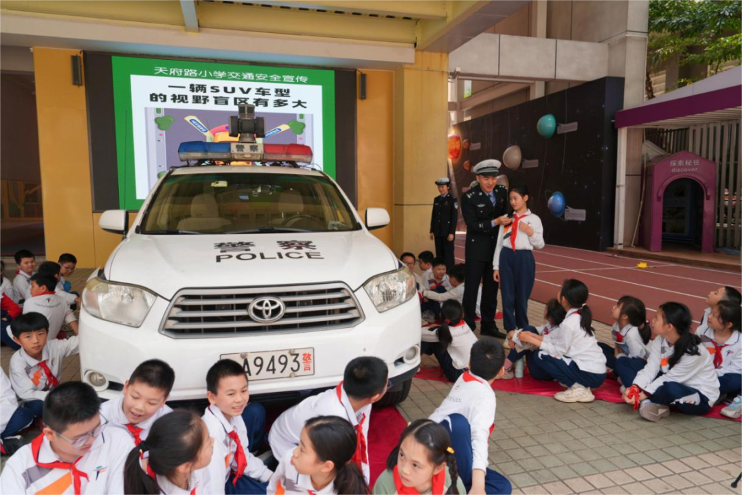 在完善硬件设施、优化交通组织的同时,广州交警发挥宣传教育“软实力”作用,今年以来组织宣讲力量深入校园,开展形式多样的交通安全主题宣传活动超200场。通过开设“交通小课堂”、发放交通安全手册、播放警示教育片等形式,交管部门向师生们普及安全过马路、规避车辆盲区、正确使用安全头盔等常识。