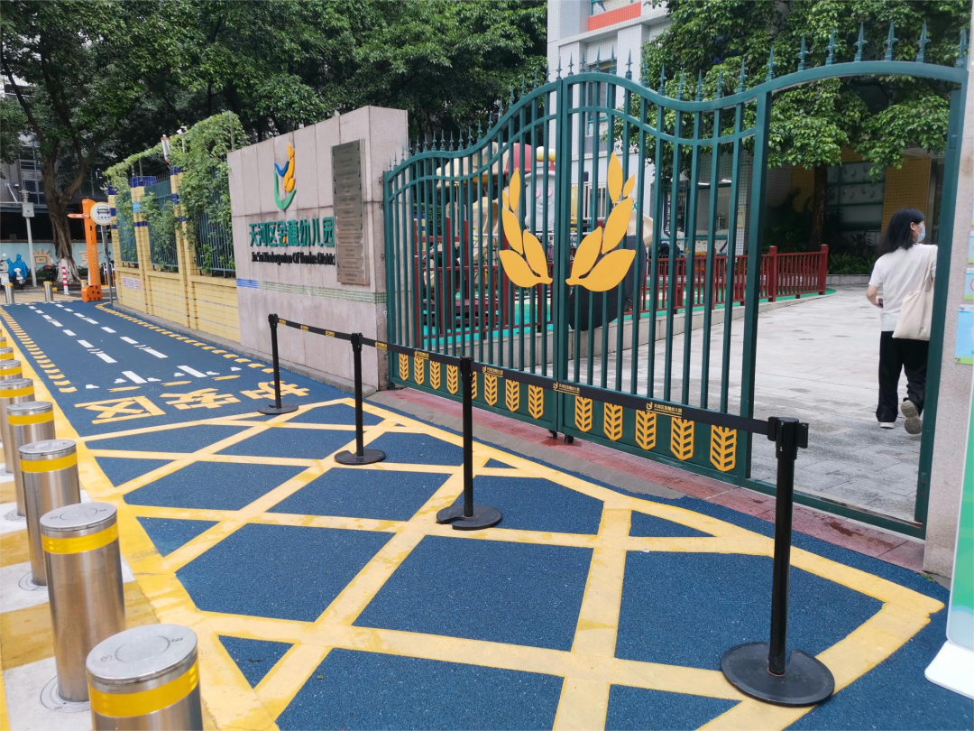 完善学校区域警告、机动车限速等交通标志;全面复划、更新校园周边道路的人行横道线,提高可视度;对于校园出入口正对的车道,施划网状线,禁止车辆停放;推动相关单位在周边道路人行道设置标准护学通道,在校园出入口增设隔离设施……连日来,交管部门通过优化升级交通设施,打造安全有序的通行环境。