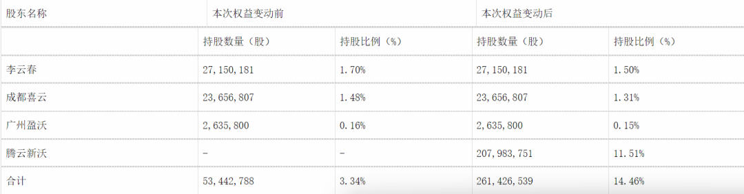除腾云新沃及其一致行动人持有公司14.46%表决权股份外,其余股东所持公司表决权较为分散。同时,本次发行后,公司董事会设置9名董事,其中3名独立董事,腾云新沃将向公司董事会提名4名非独立董事和2名独立董事,超过董事半数。本次权益变动完成后,公司的控股股东为腾云新沃,实际控制人为黄涛。