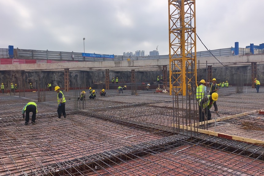 当前,负二层顶板钢筋绑扎正高效推进。项目负责人表示,下一步将继续优化资源配置,强化过程管控,在保障质量安全的前提下全力冲刺节点目标,确保这一惠民工程早日惠及周边群众,为番禺区卫生健康事业高质量发展注入新动能。