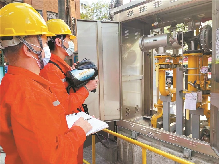 工作人员检查燃气设施。图/广州日报新花城记者:刘春林