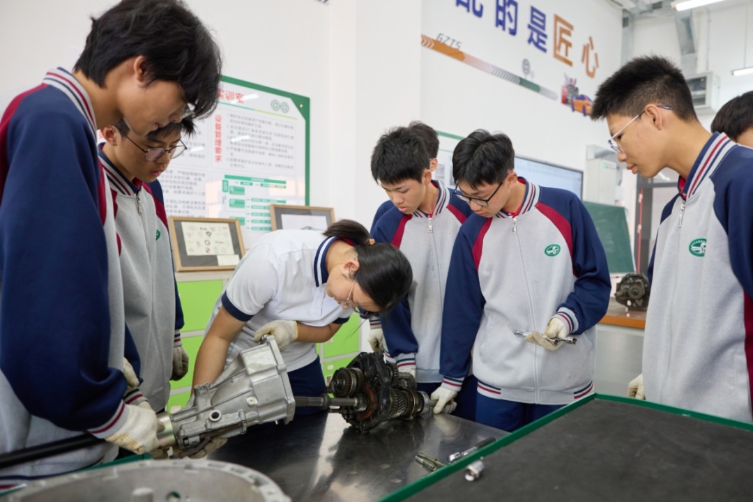 在广州市交通运输职业学校,新能源汽车运用与维修专业中本贯通班学生邓彤瑶同样收获满满。“我们学的是高中数学和英语,老师找的题目跟高中同学对比,他们说也有一定难度。”到了实践课上,她热衷于拆装汽车底盘、传动轴,搬起东西来连男生都点赞,“我喜欢动手,感觉特别酷。”邓彤瑶坦言,以她644分的中考分数,去普高也不一定能稳稳地上本科,但中本贯通就是一个很好的选择。