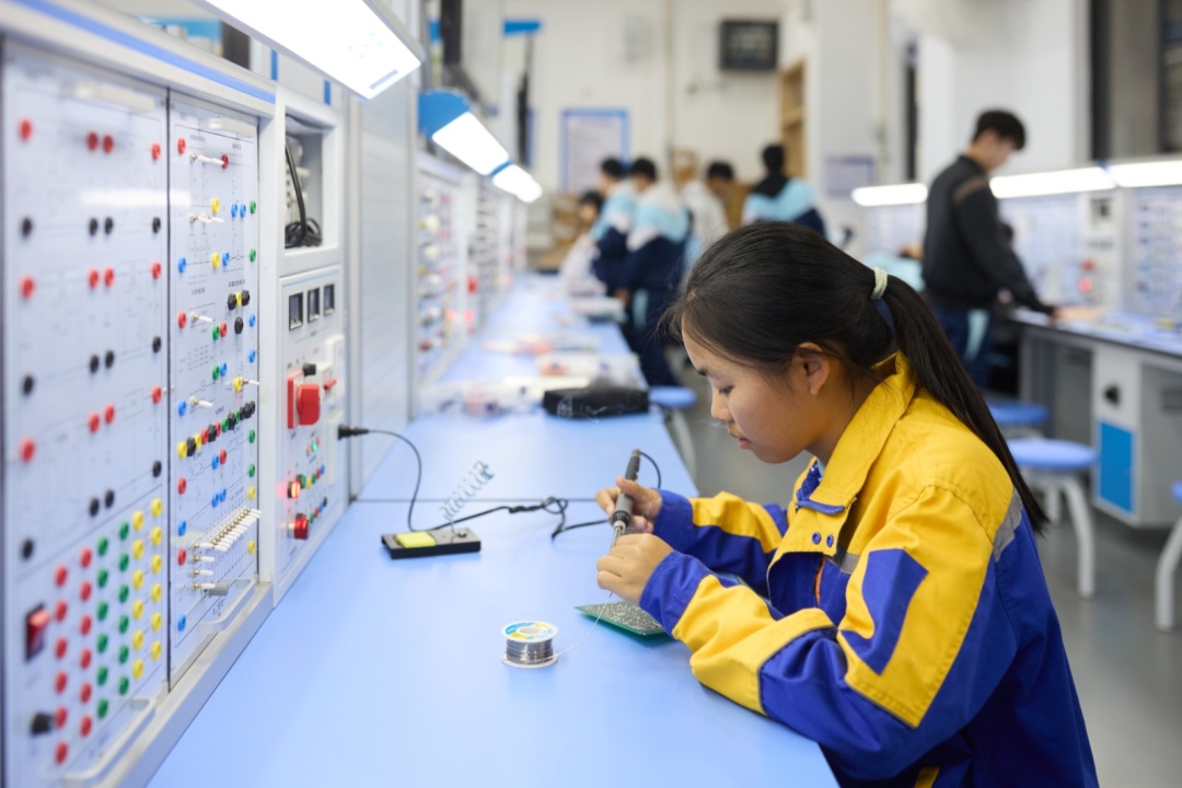 更可贵的是职业方向清晰,有学生还成为技能竞赛后备选手。一学期下来,广州市轻工职业学校组织学生走进广东轻工职业技术大学的实训基地,参观企业,听职业规划讲座。“我学的机电技术,以后真的可以去操控那些智能生产线。”陈华金说,目标现在很明确:三年后顺利通过转段考核,将来想成为一名智能制造领域的工程师。邓彤瑶则计划,在7年里增强自主学习能力,学好文化与技能后去小鹏汽车这样的大厂上班。