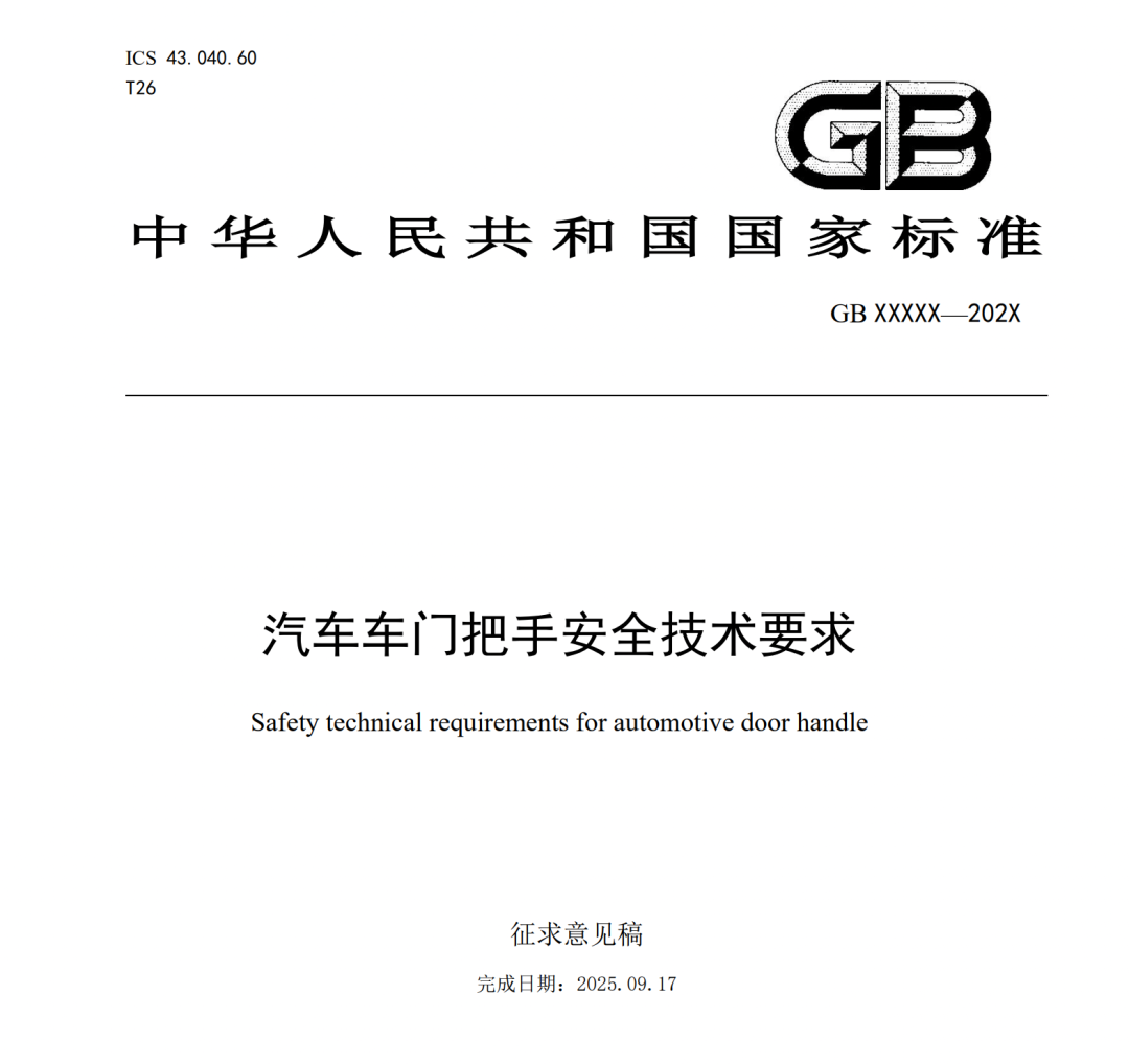 《汽车车门把手安全技术要求》去年已经开始征求意见,今年1月28日正式发布