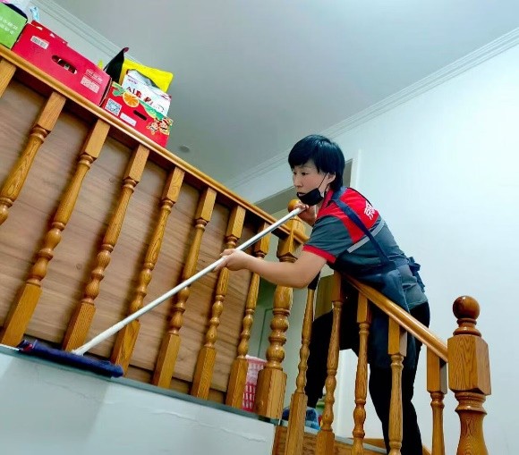 家政服务人员上门为用户进行保洁服务。